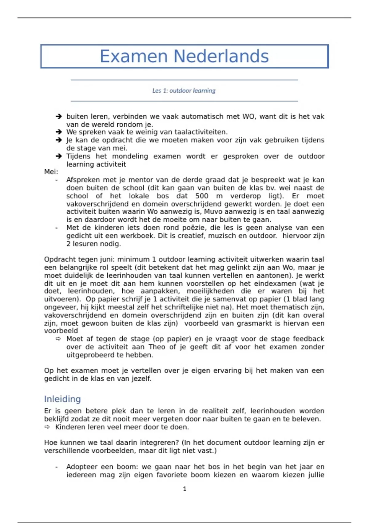 Opdracht gekozen van outdoor learning tekstsoorten en tekstbedoeling
