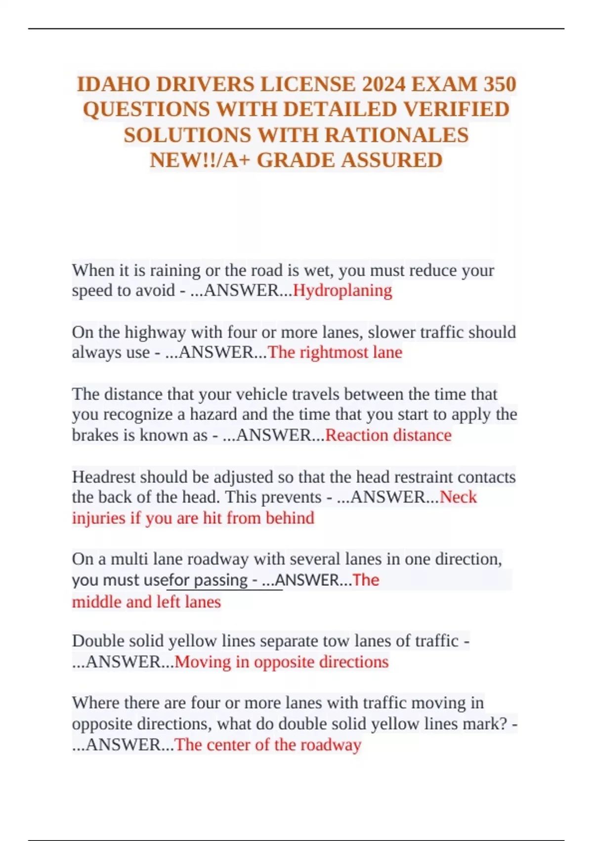 IDAHO DRIVERS LICENSE 2024 EXAM 350