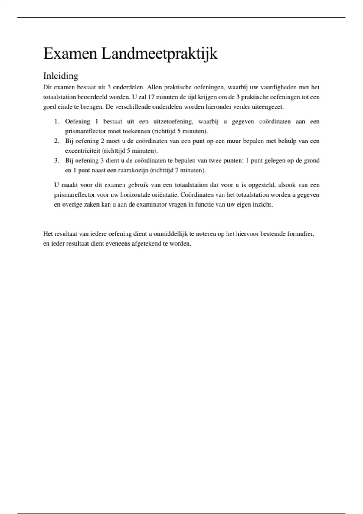 totaalstation beoordeeld worden. U zal 17 minuten de tijd krijgen om de 3 praktische oefeningen tot een