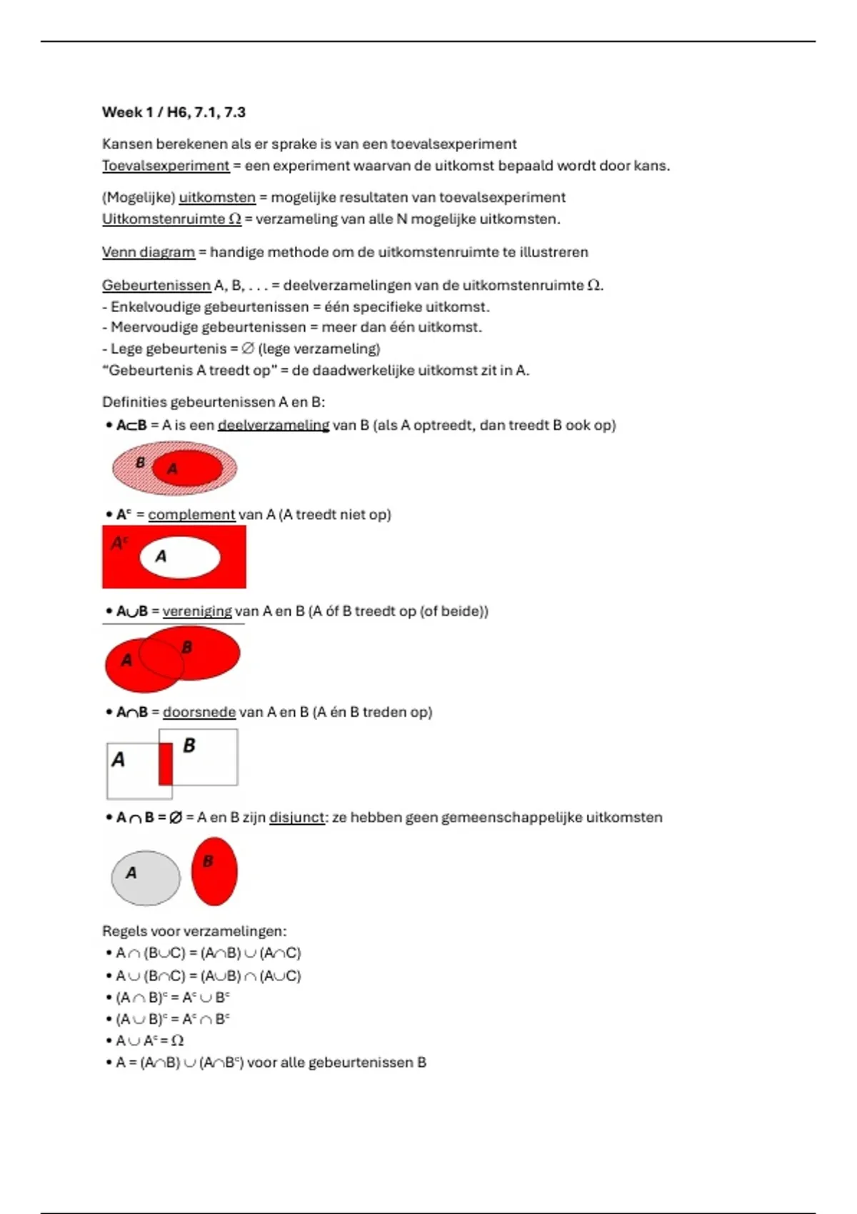 Gebeurtenissen A, B, . . . = deelverzamelingen van de uitkomstenruimte .