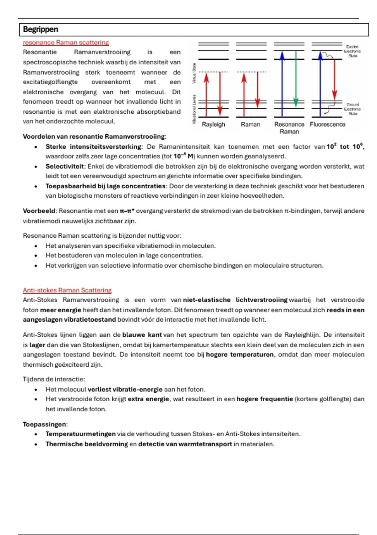 • Selectiviteit: Enkel de vibratiemodi die betrokken zijn bij de elektronische overgang worden versterkt, wat