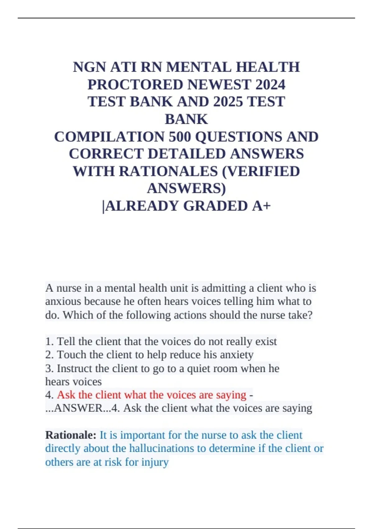 ...ANSWER...4. Ask the client what the voices are saying