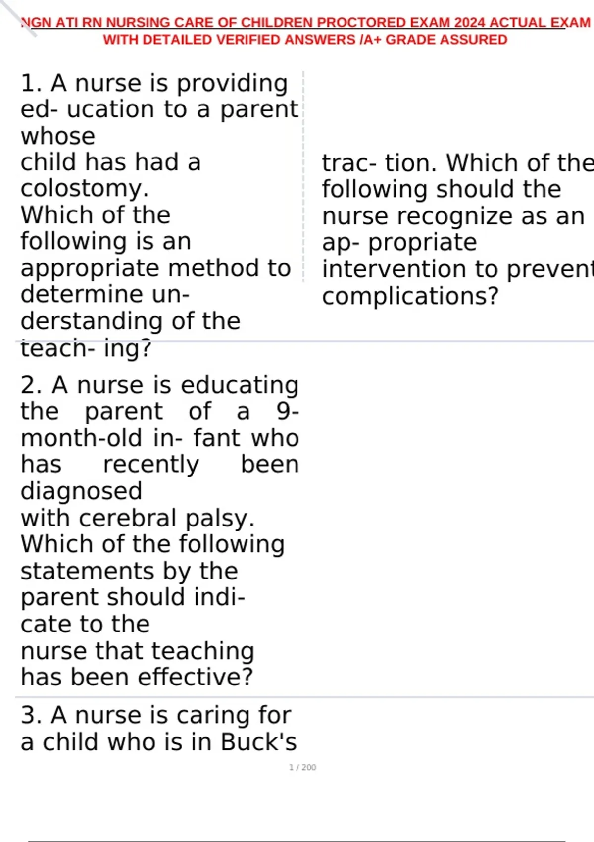 ,NGN ATI RN NURSING CARE OF CHILDREN PROCTORED EXAM 2024 ACTUAL EXAM