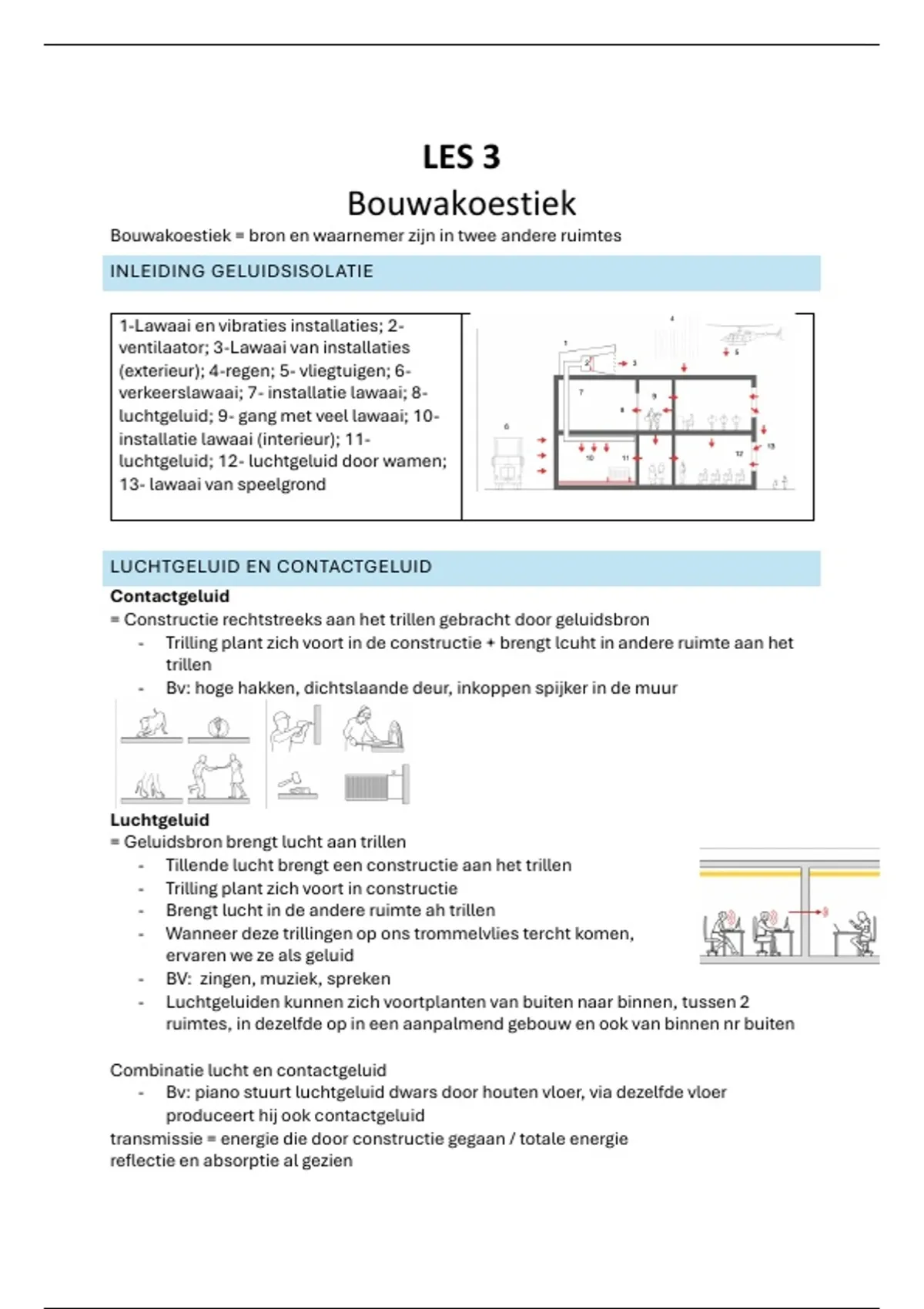 Bouwakoestiek = bron en waarnemer zijn in twee andere ruimtes