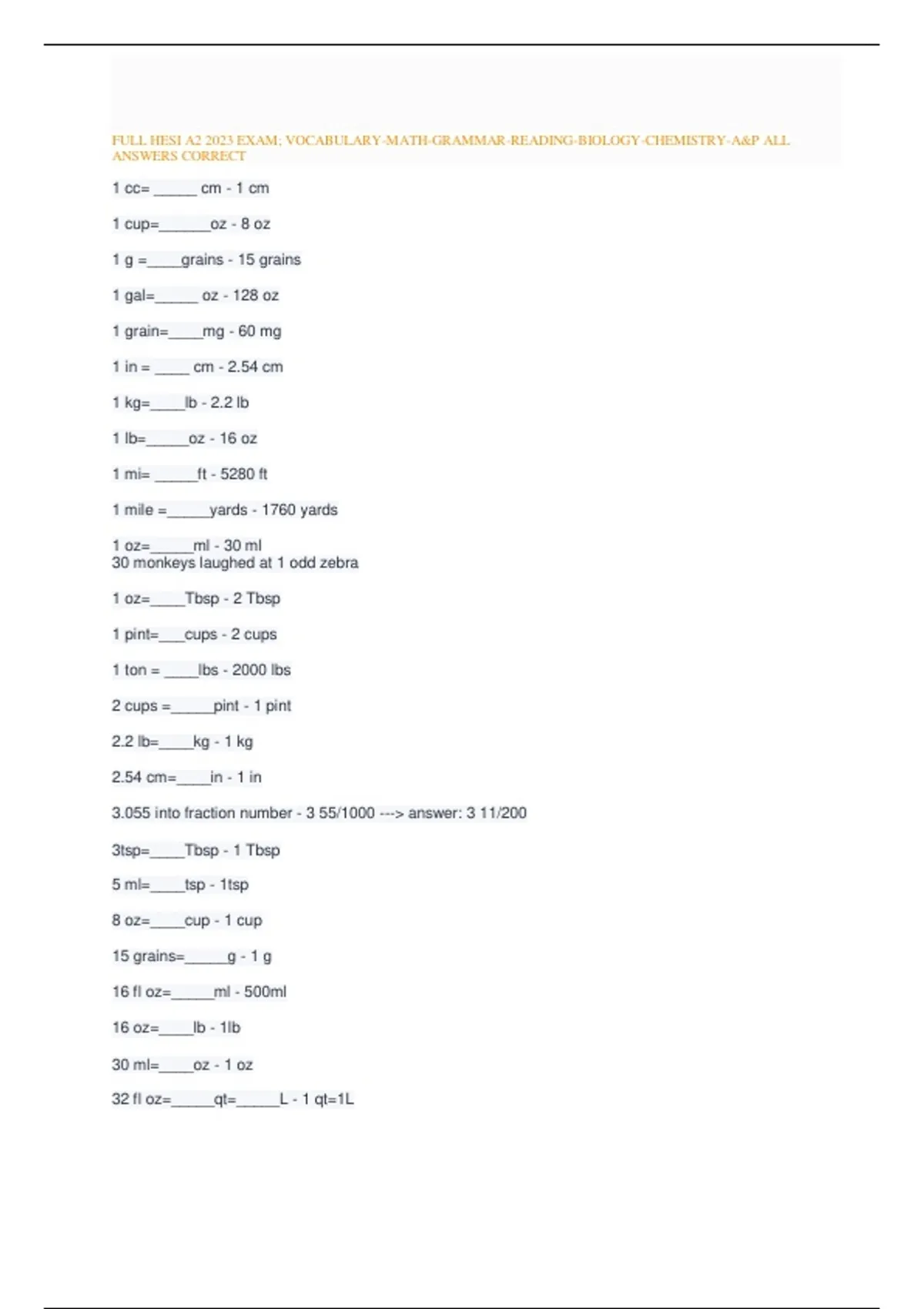 ,FULL HESI A2 2023 EXAM; VOCABULARY-MATH-GRAMMAR-READING-BIOLOGY-CHEMISTRY-A&P ALL