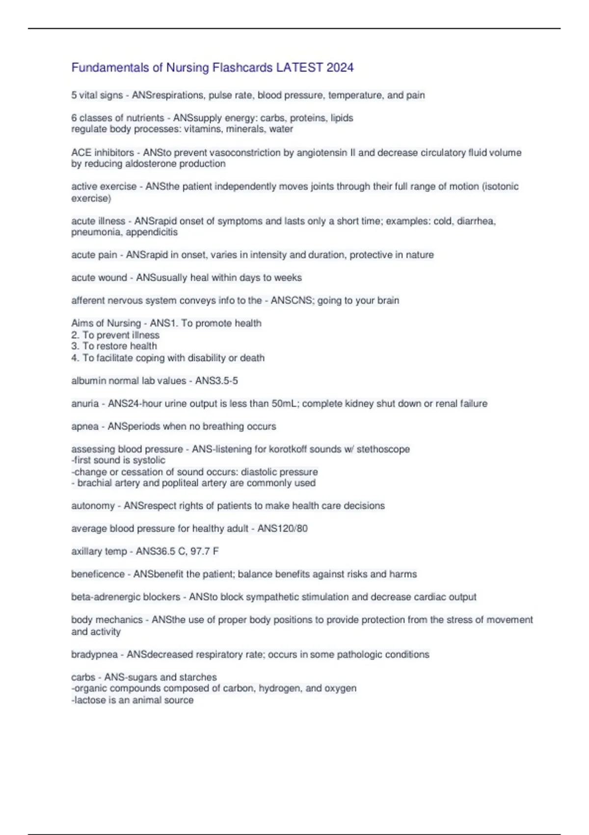 , Fundamentals of Nursing Flashcards LATEST 2024