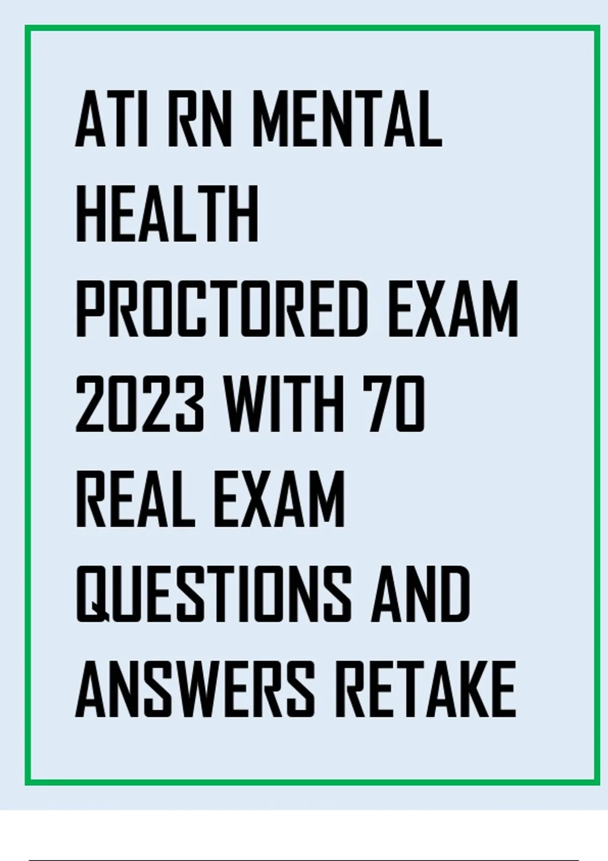 ATI RN MENTAL HEALTH PROCTORED EXAM 2023 WITH 70 REAL EXAM QUESTIONS AND ANSWERS RETAKE
