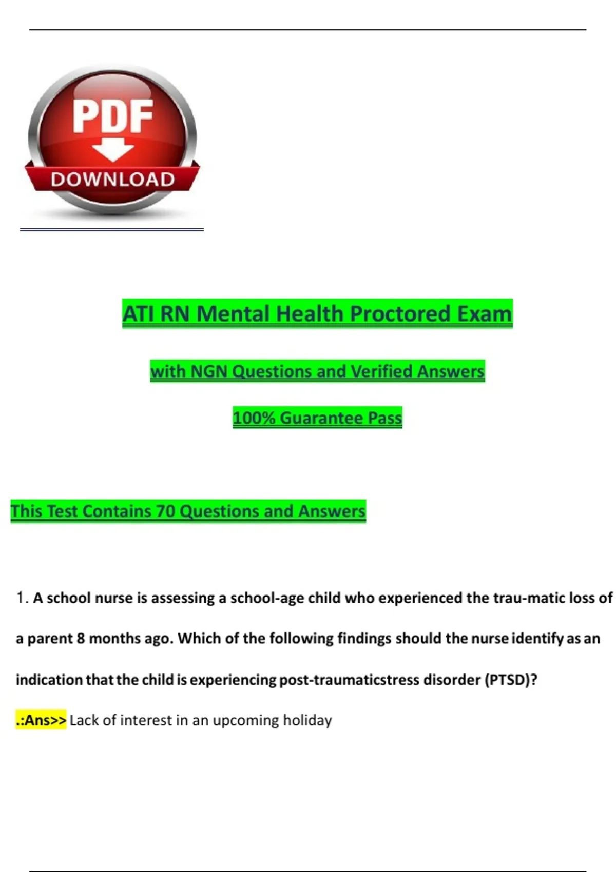 1. A school nurse is assessing a school-age child who experienced the trau-matic loss of