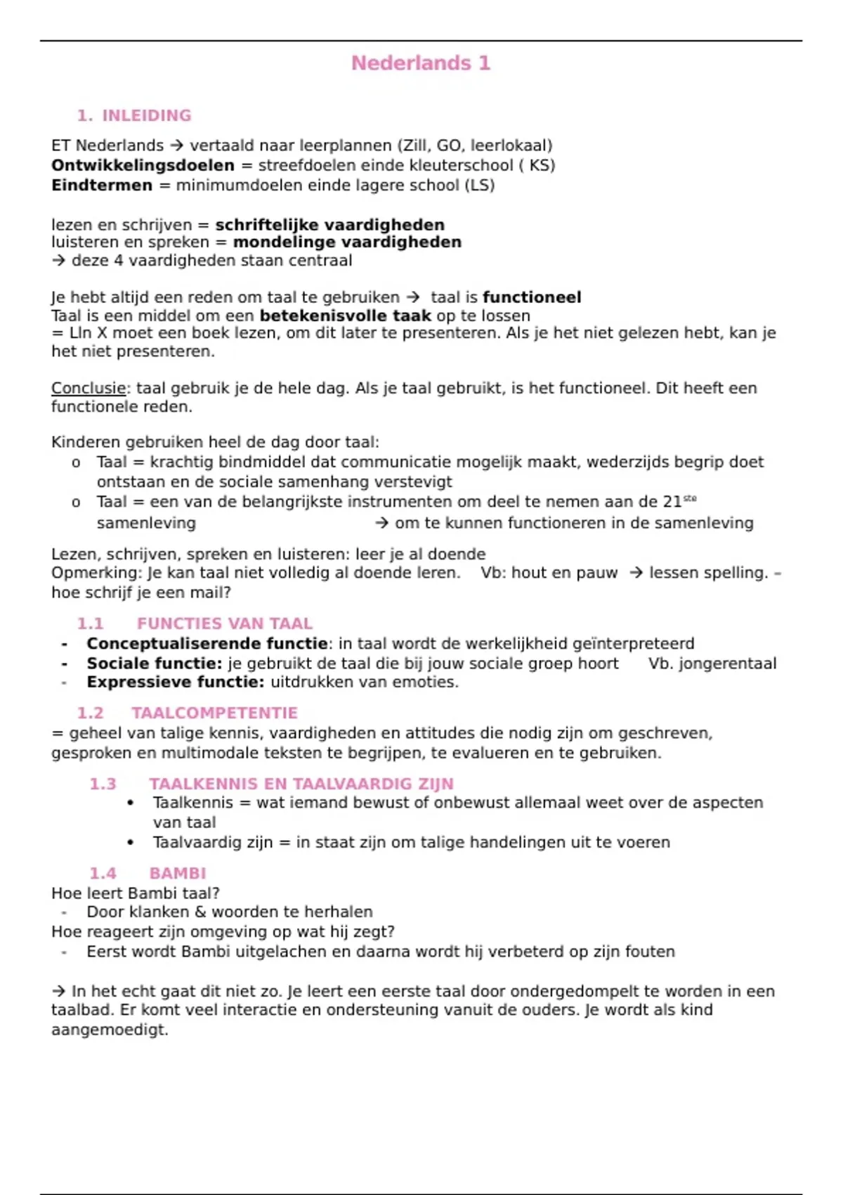 Samenvatting van alle slides uit de les, aantekeningen + aanvullende informatie uit het boek Volop Taal. Ik slaagde met deze samenvatting met 16/20 in eerste zit.