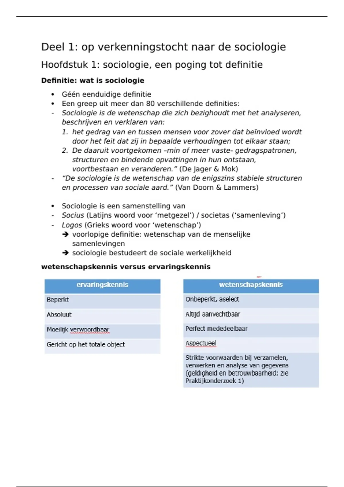 Dit is een uitgebreide samenvatting van het vak sociologie voor eerstejaarsstudenten SRW. Elk hoofdstuk is een apart document, wat handig is tijdens de lessen. Je krijgt een goed overzicht per hoofdstuk. Ik heb veel voorbeelden toegevoegd per onderwerp zodat je de leerstof goed kan onthouden en begrijpen. Met deze samenvatting heb ik een 16/20 gehaald. Heel veel succes!!! BELANGRIJK: dit is maar 1 hoofdstuk van het vak, je kan een voordelige bundel kopen zodat je alle hoofdstukken hebt!