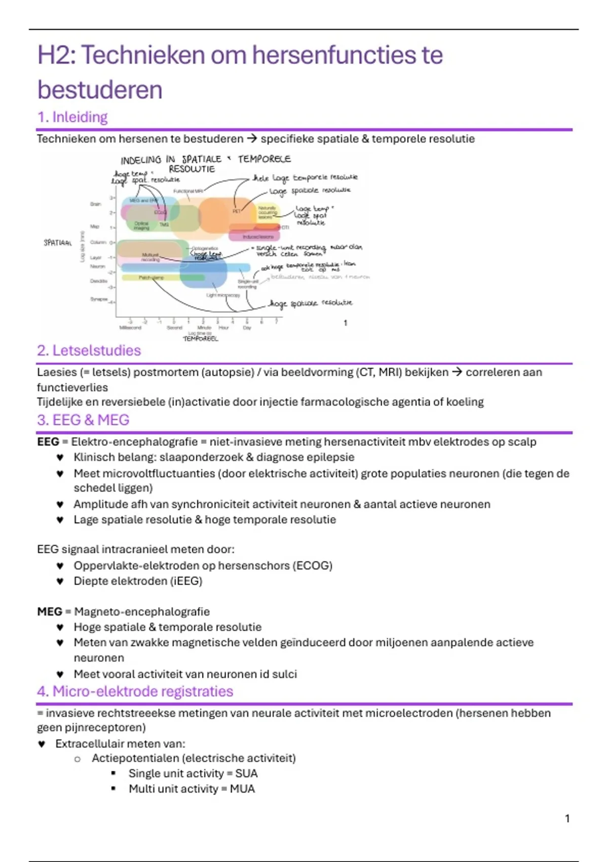 Technieken om hersenen te bestuderen à specifieke spatiale & temporele resolutie