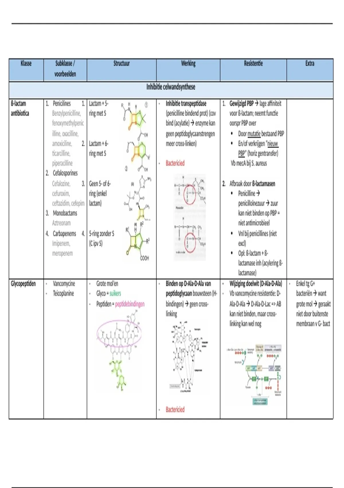 ß-lactam 1. Penicilines 1. Lactam + 5- - Inhibitie transpeptidase 1. Gewijzigd PBP lage affiniteit