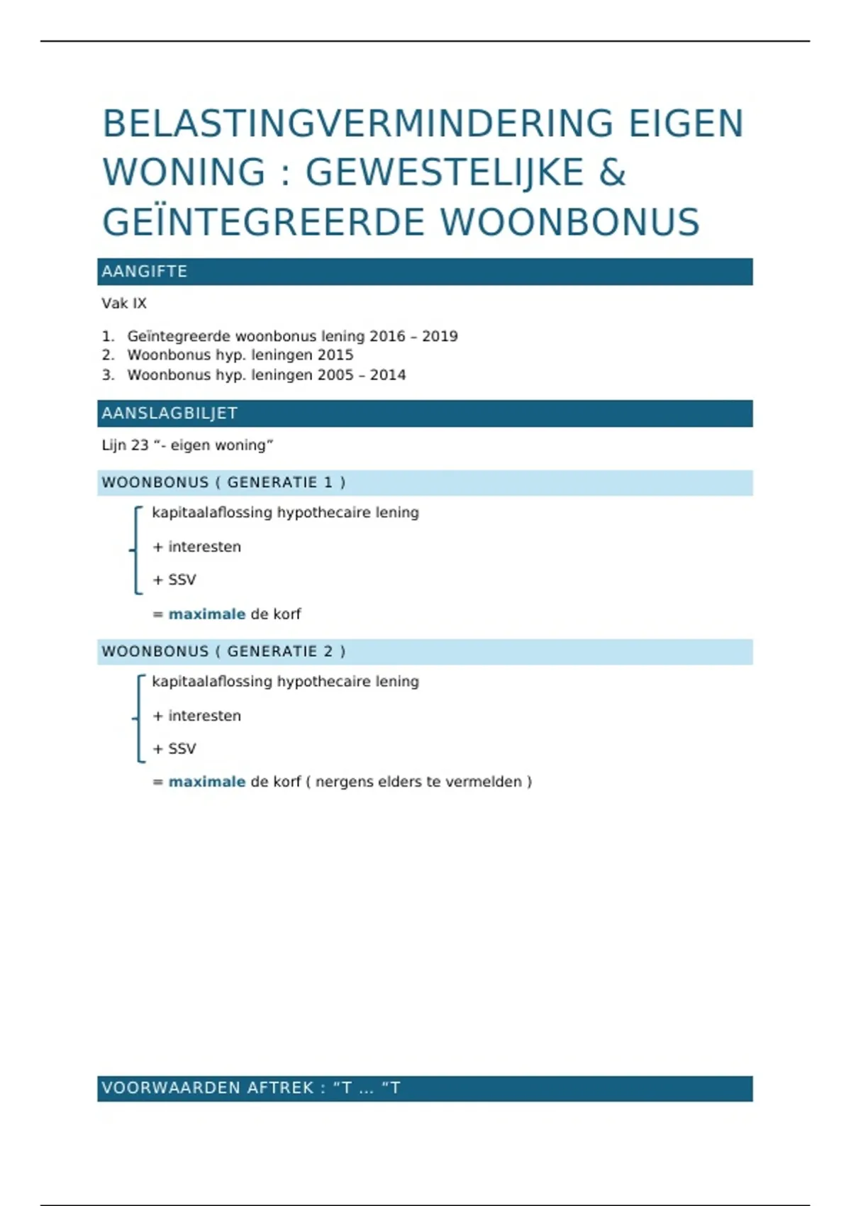 VOORWAARDEN AFTREK : “T … “T