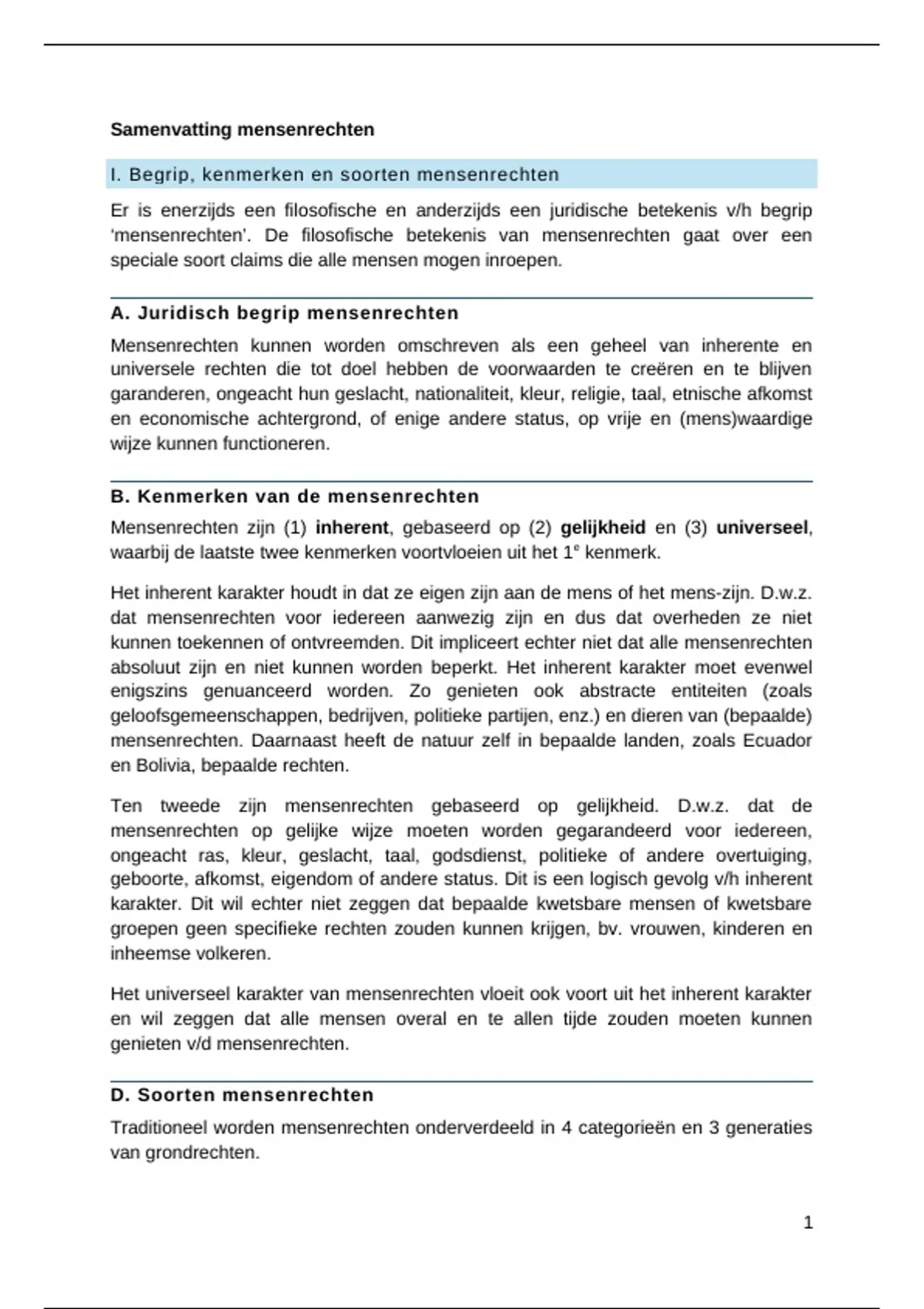 1. Mensenrechten op nationaal vlak voor en tijdens de 20 e eeuw