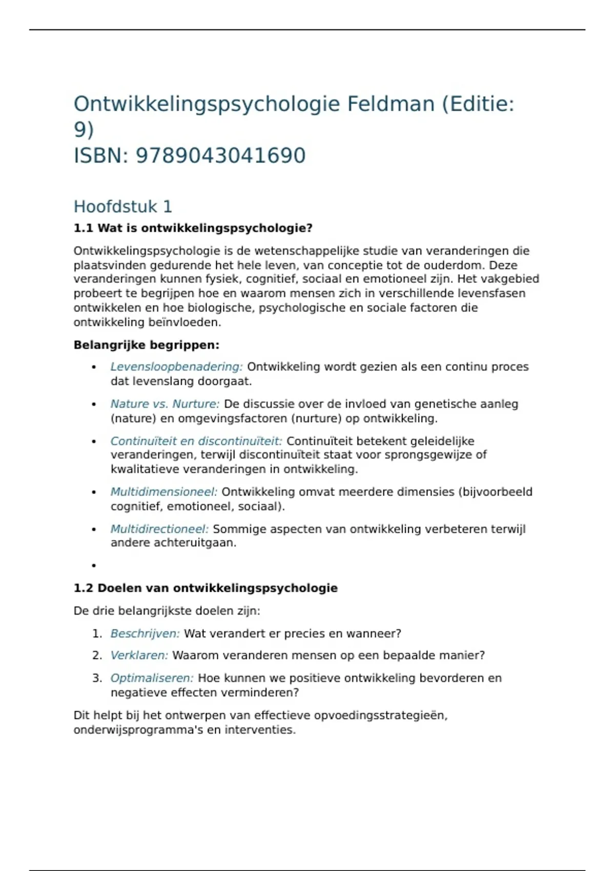 1.2 Doelen van ontwikkelingspsychologie