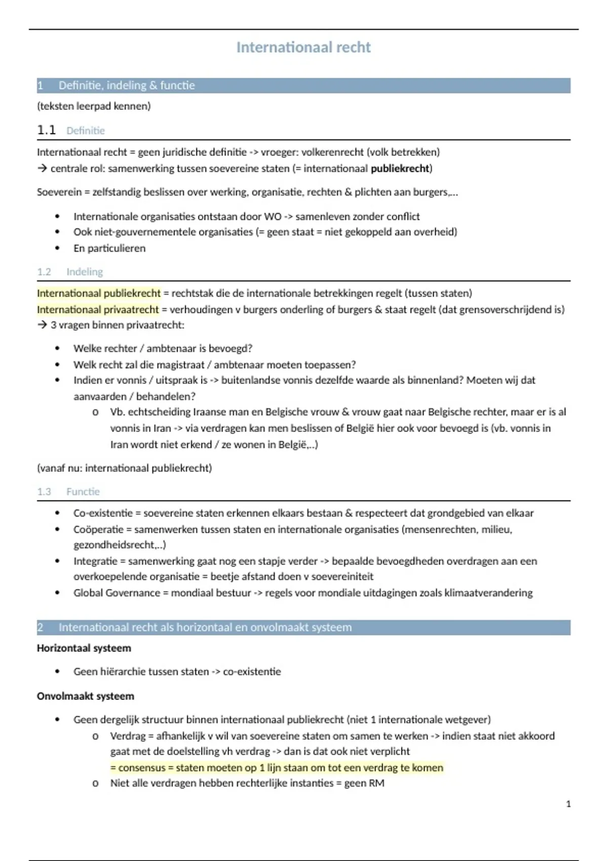 Internationaal recht = geen juridische definitie -> vroeger: volkerenrecht (volk betrekken)