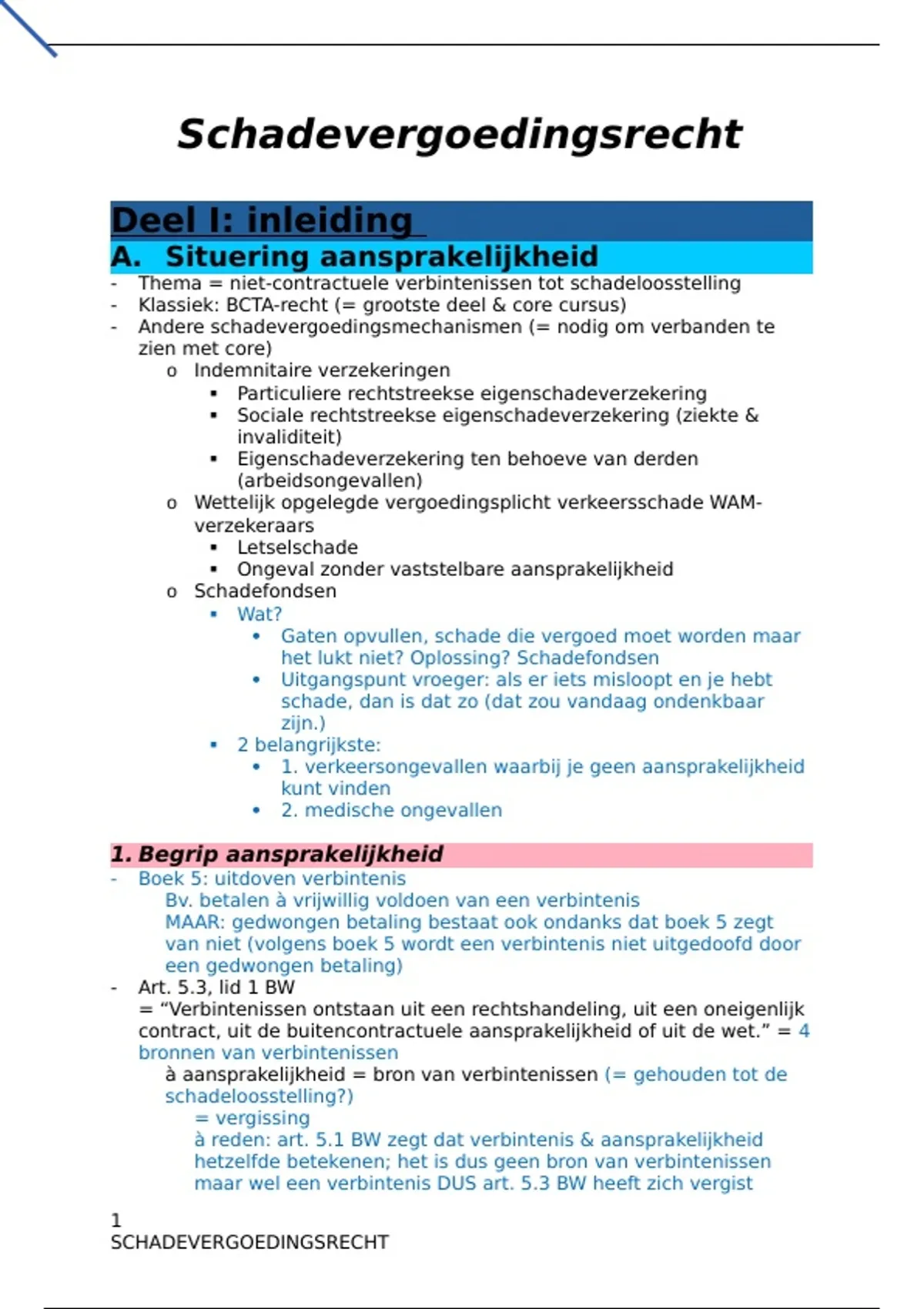 GEGARANDEERD SLAGEN. Schadevergoedingsrecht: vak aan de UGent in tweede bachelor van de rechten door Marc Kruithof. De samenvatting bevat alles van de syllabus + ALLE notities tijdens de les (alle lessen goed gevolgd + herbekeken) + verwijzingen naar artikelen uit onze codexen + voorbeeld EXAMENVRAGEN. Het is duidelijk en overzichtelijk opgesteld, zodat je in no time alles onder de knie hebt. Bij vragen kan je steeds een berichtje sturen! Met deze samenvatting behaalde ik 16/20 tijdens de eerste zit periode. Veel succes met het examen!