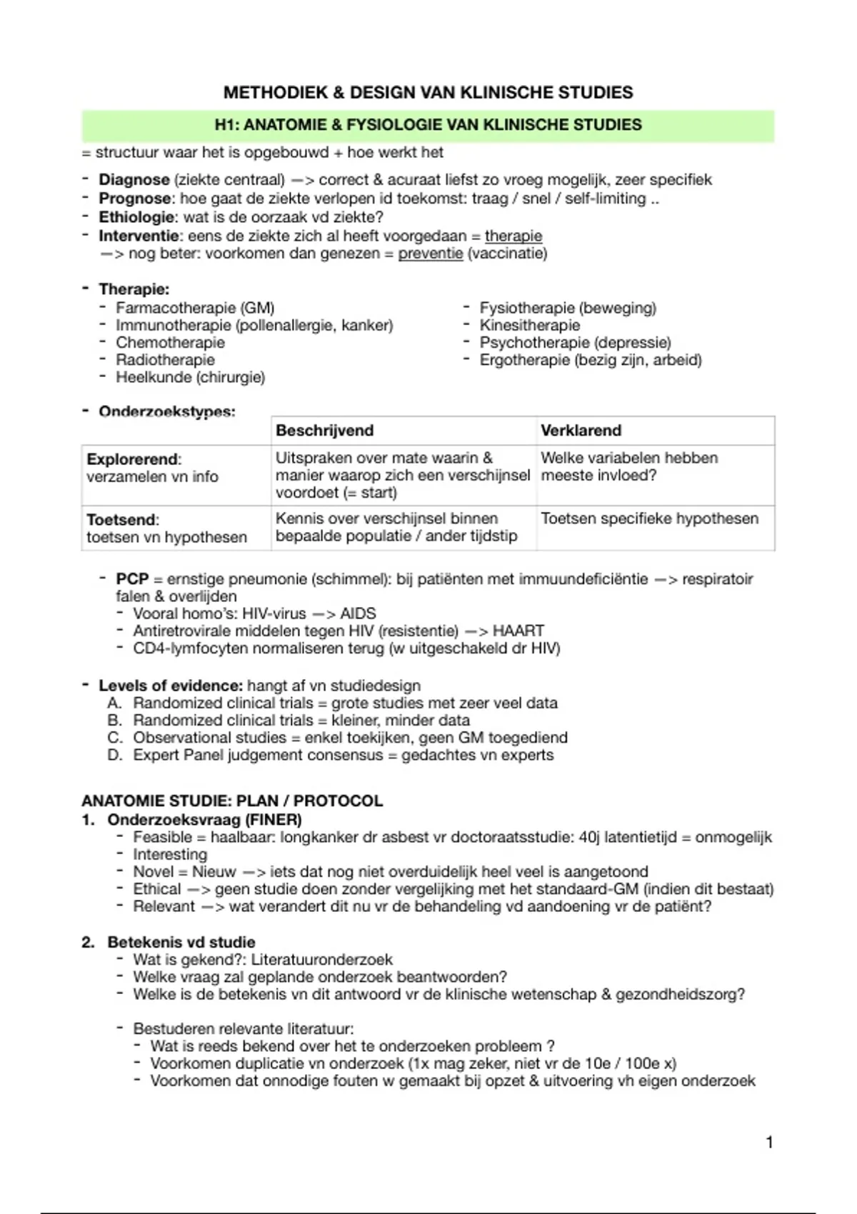 H1: ANATOMIE & FYSIOLOGIE VAN KLINISCHE STUDIES