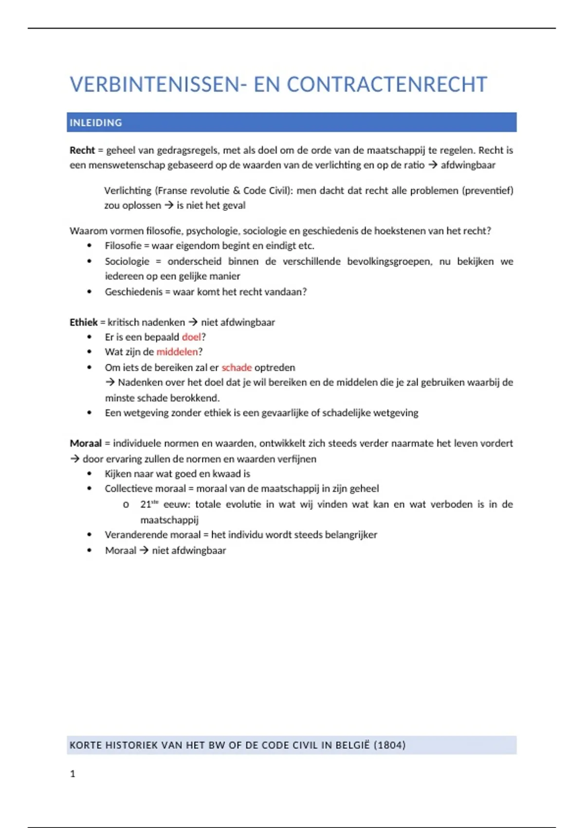 VERBINTENISSEN- EN CONTRACTENRECHT