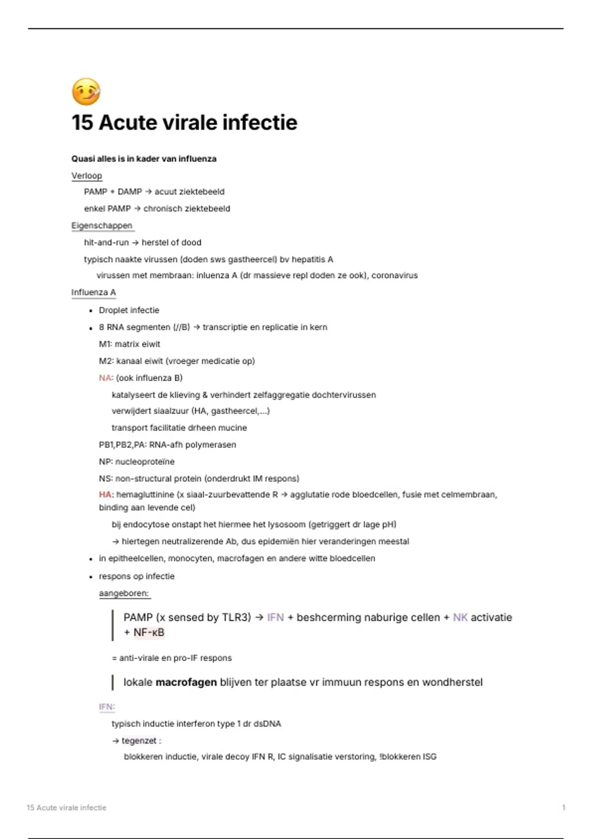 H15 acute virale infectie zelfgeschreven cursus/samenvatting !! best in bundel te kopen