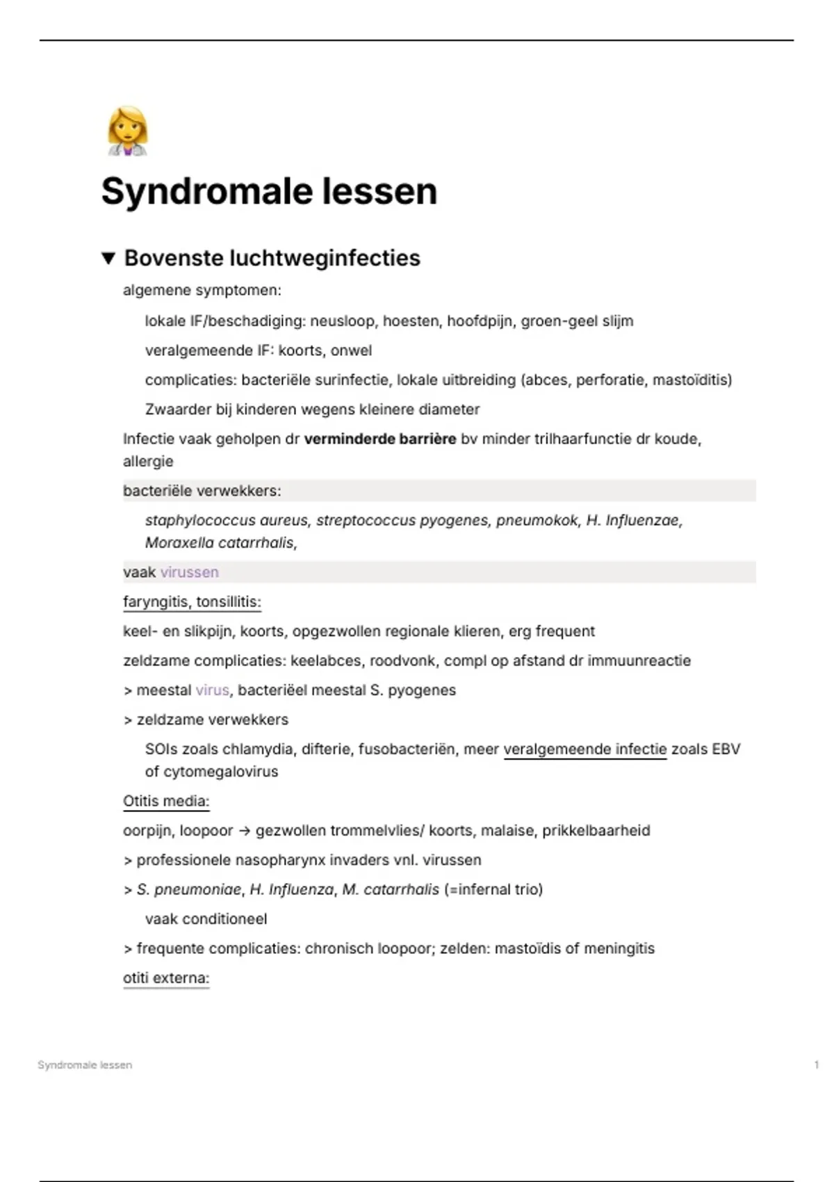Alle syndromale lessen zelfgeschreven cursus/samenvatting !! best in bundel te kopen