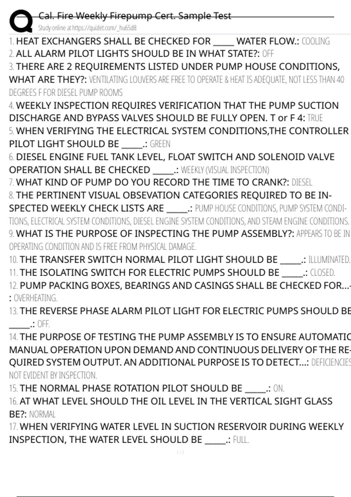 Cal. Fire Weekly Firepump Cert. Sample Test