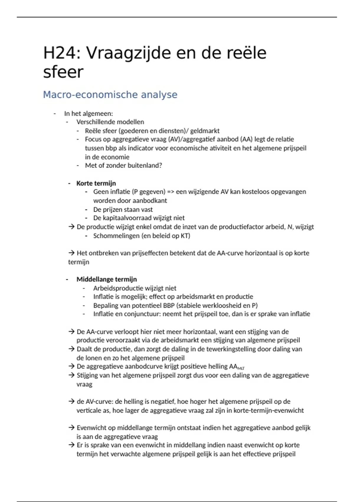 samenvatting economie H24 aangevuld met handboek, ppt en hoorcolleges