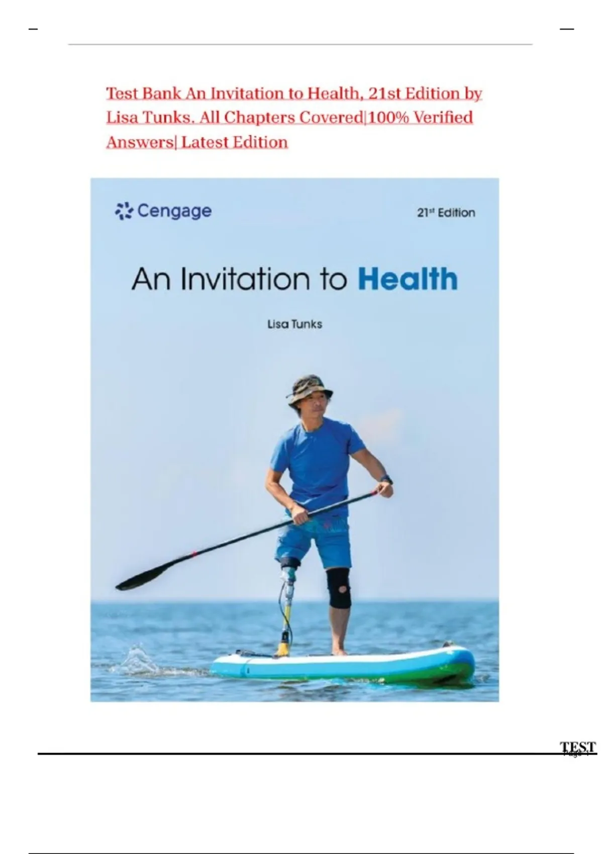 Test Bank An Invitation to Health, 21st Edition by Lisa Tunks. All Chapters Covered|100% Verified Answers| Latest Edition