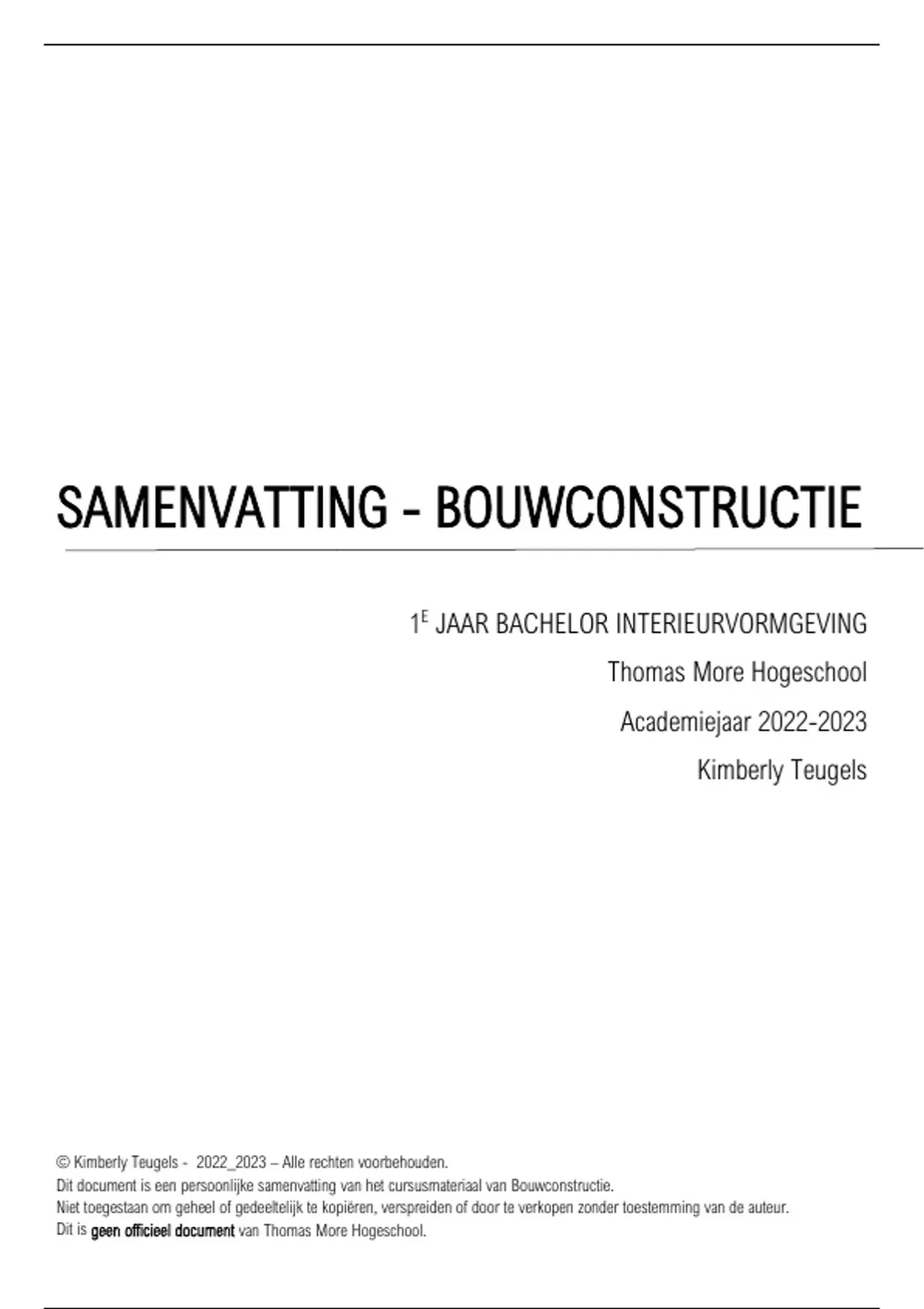 Dit document is een persoonlijke samenvatting van het cursusmateriaal van Bouwconstructie.