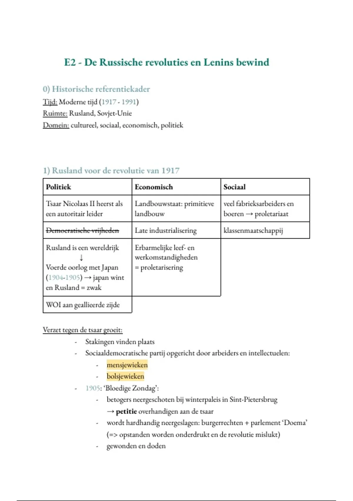 Samenvatting STORIA classic 5 aso E2 - De Russische revoluties en Lenins bewind