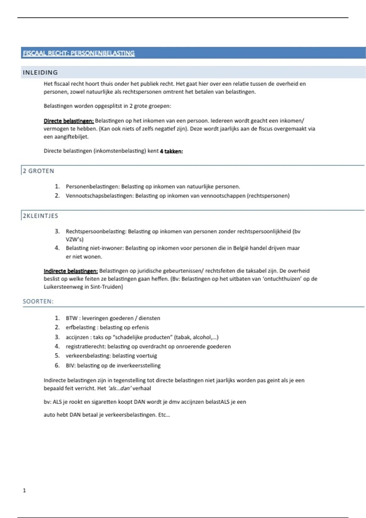 1. Personenbelastingen: Belasting op inkomen van natuurlijke personen.
