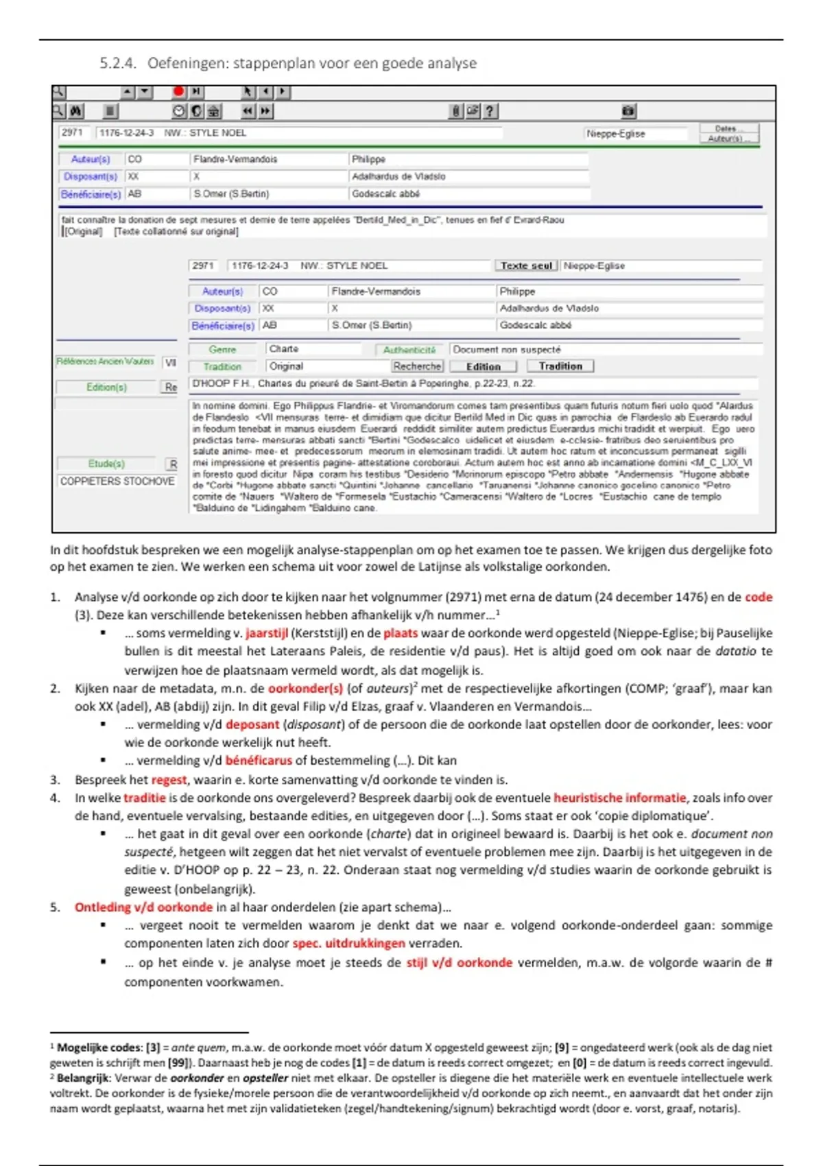 5. Ontleding v/d oorkonde in al haar onderdelen (zie apart schema)…