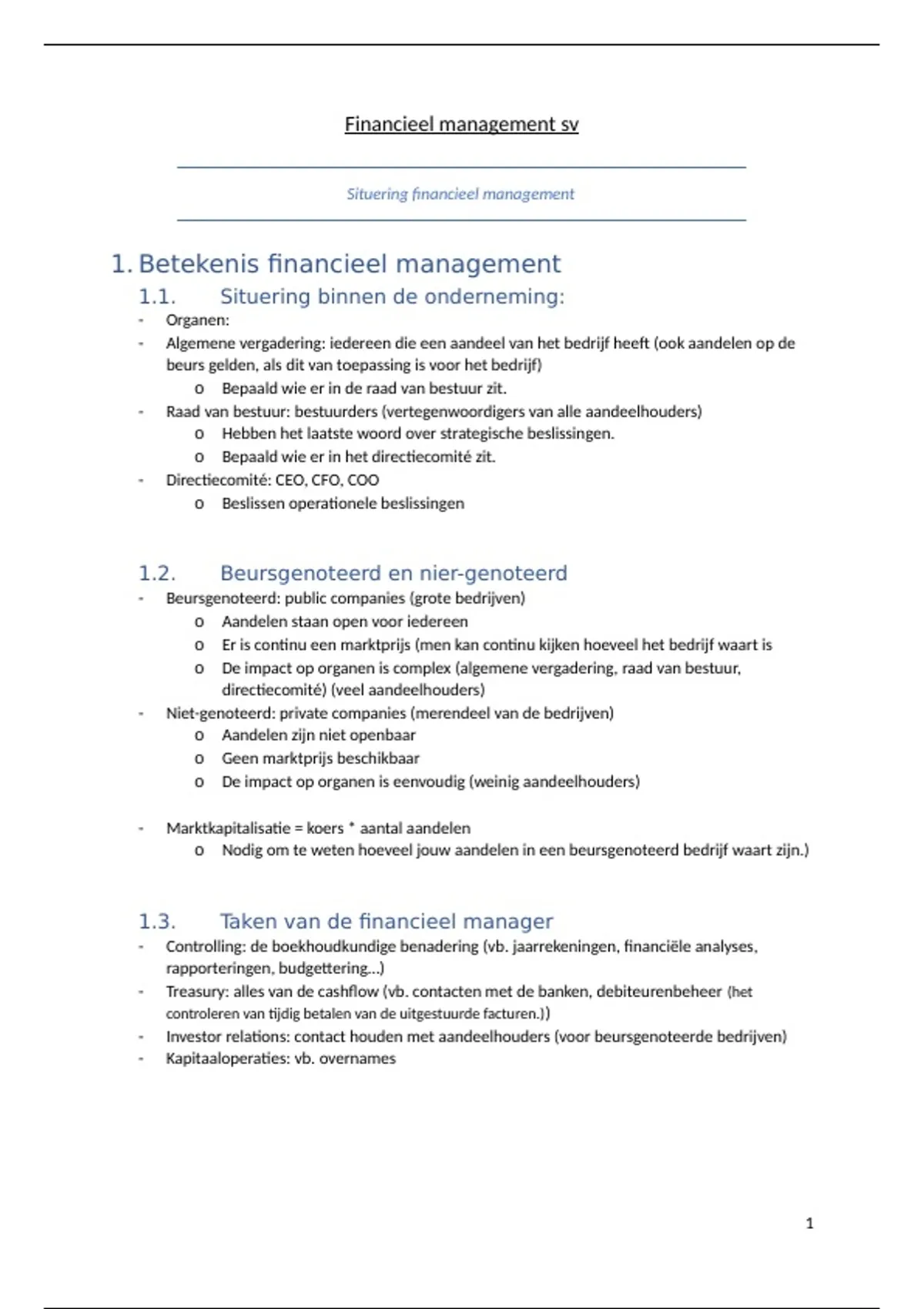 1. Betekenis financieel management