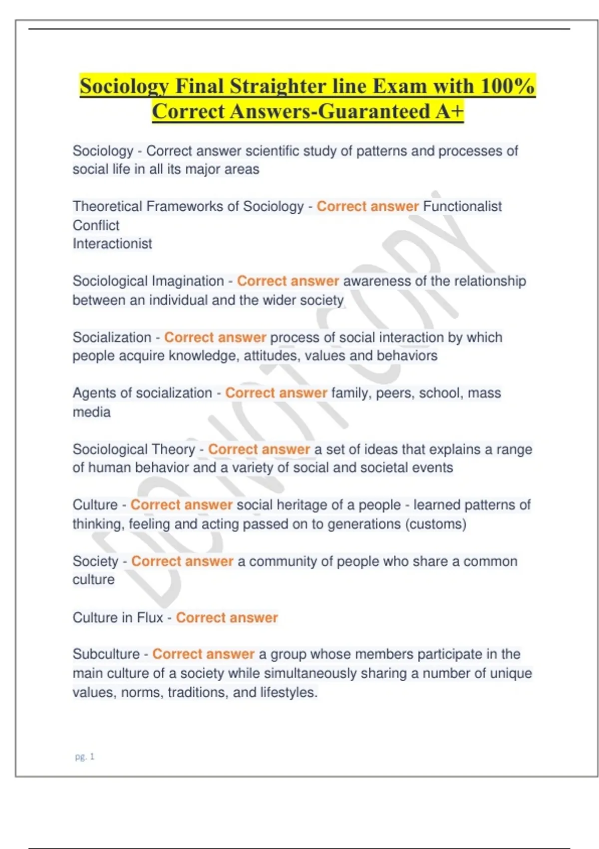 Sociology Final Straighter line Exam with 100%
