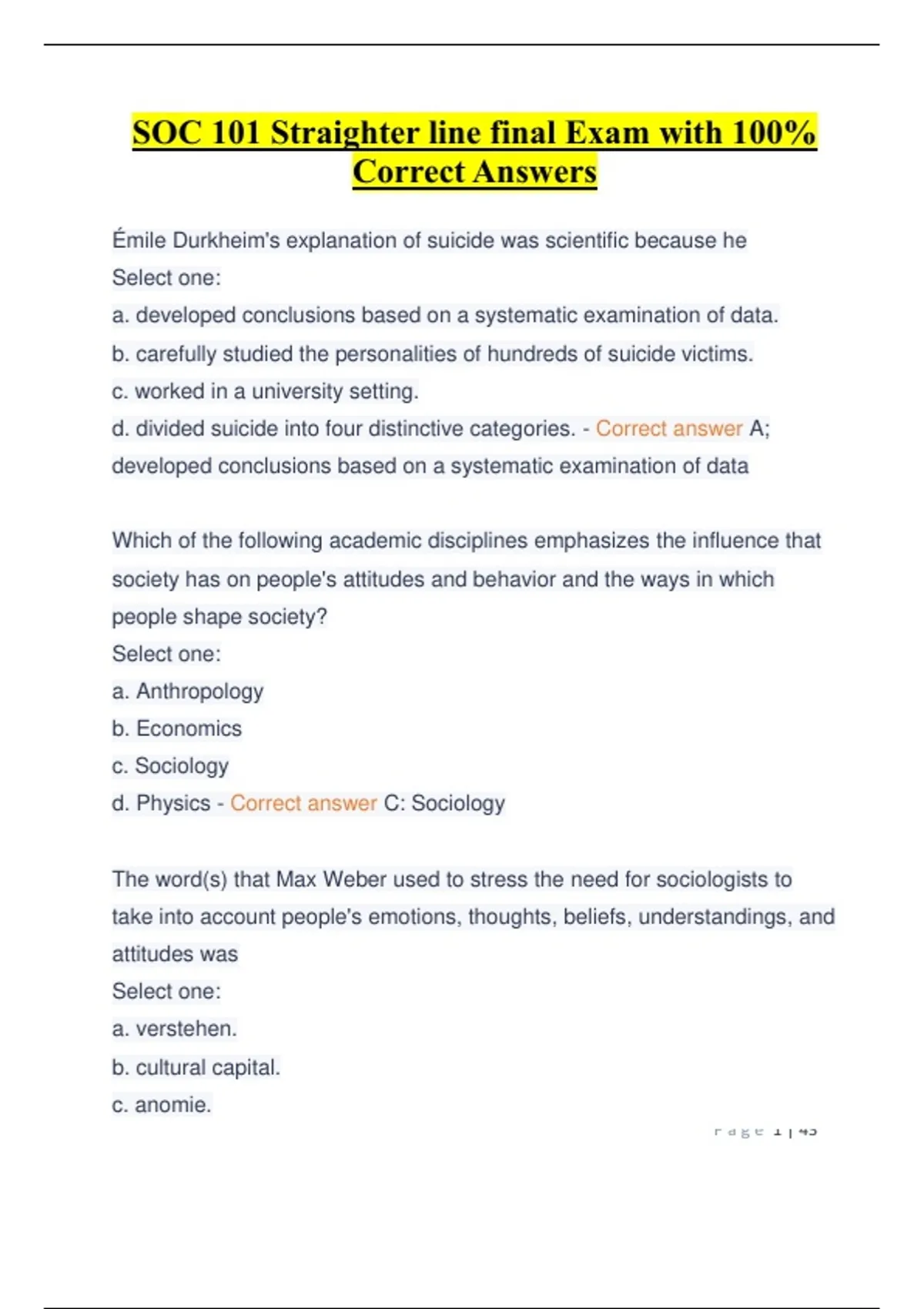 SOC 101 Straighter line final Exam with 100- Correct Answers.