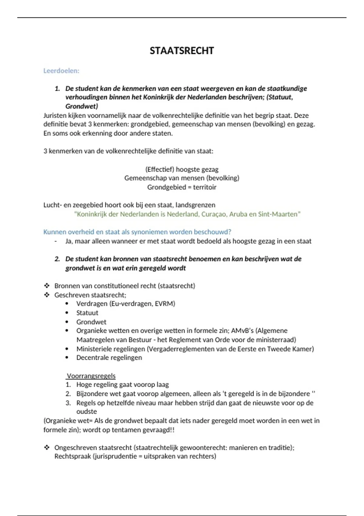 Samenvatting Staatsrecht leerdoelen jaar 1
