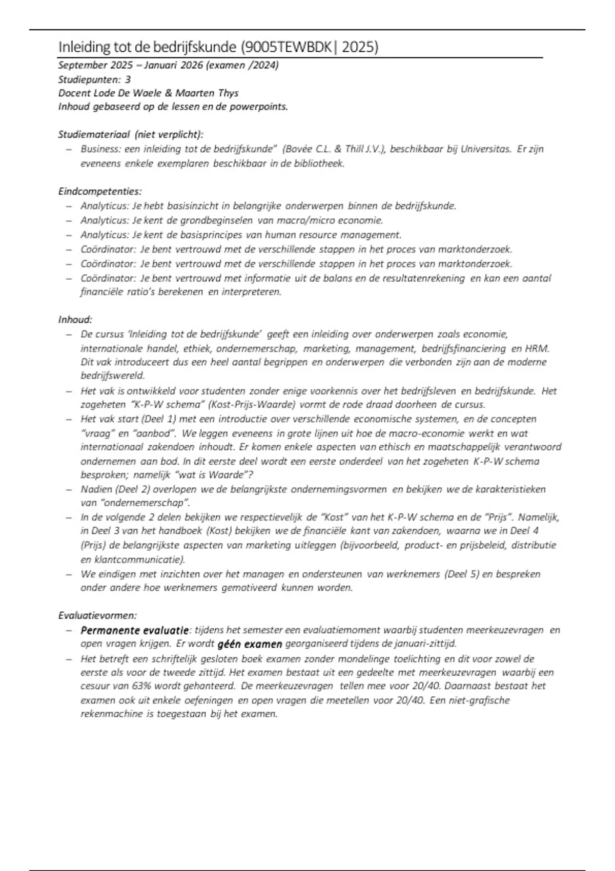 Inleiding tot de bedrijfskunde (9005TEWBDK| 2025)