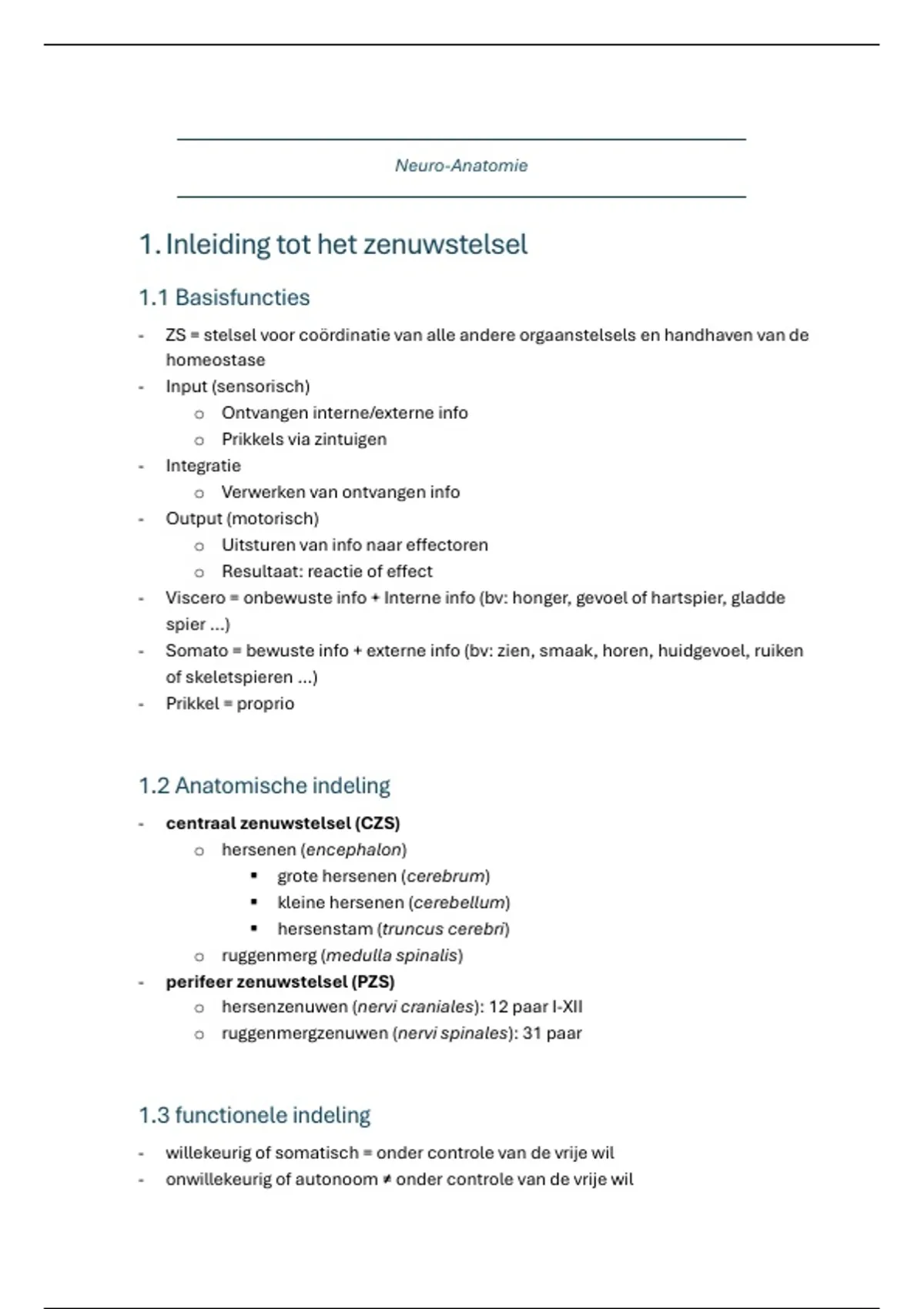Samenvatting van neuro-anatomie van in het 1ste bachelor dat mij een 18/20 bezorgde