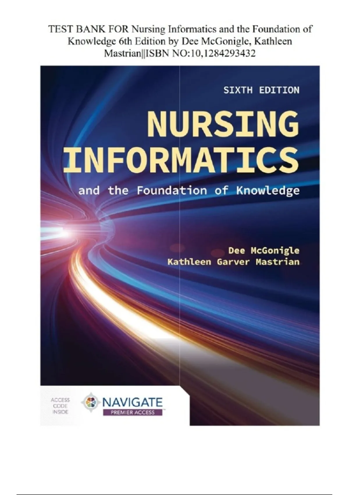 TEST BANK FOR Nursing Informatics and the Foundation of Knowledge 6th Edition by Dee McGonigle, Kathleen Mastrian||ISBN NO:10,1284293432