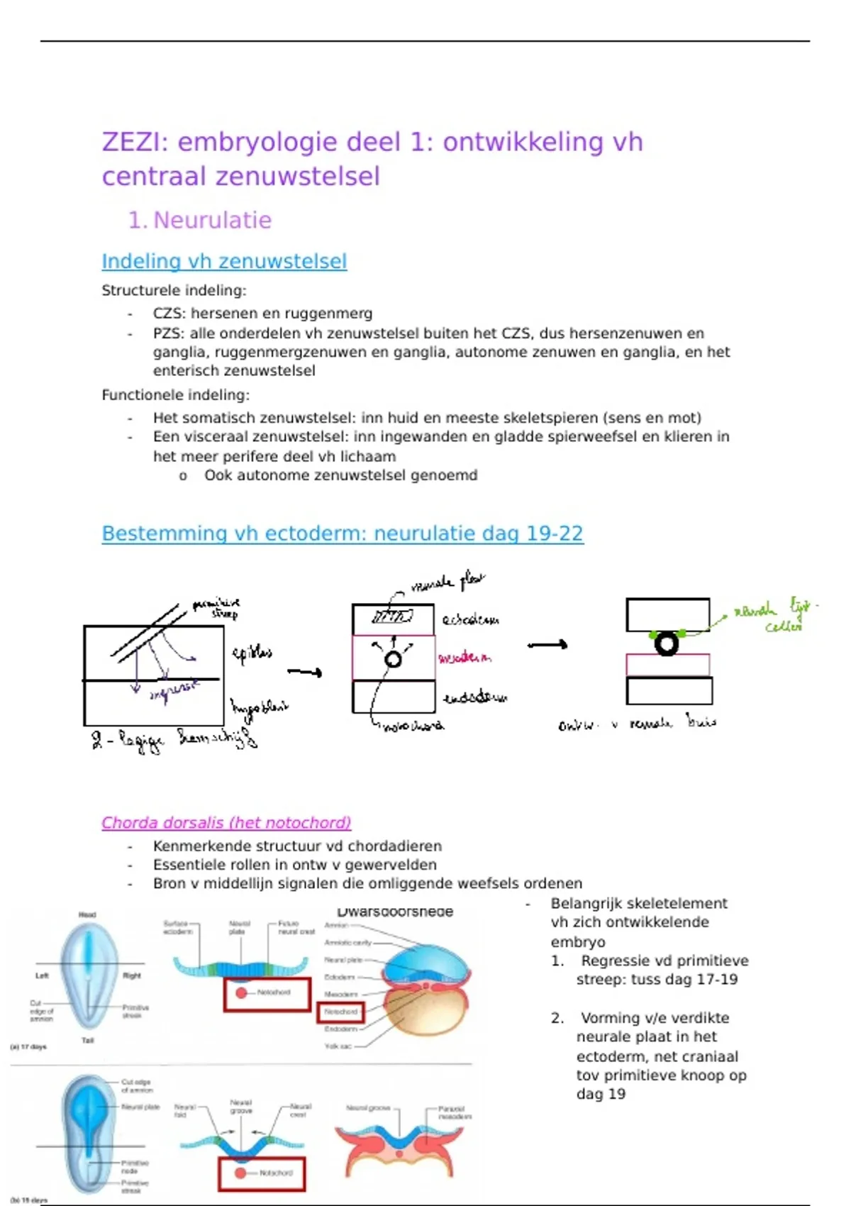 samenvatting embryologie: Zenuwstelsel en zintuigen (GNK)