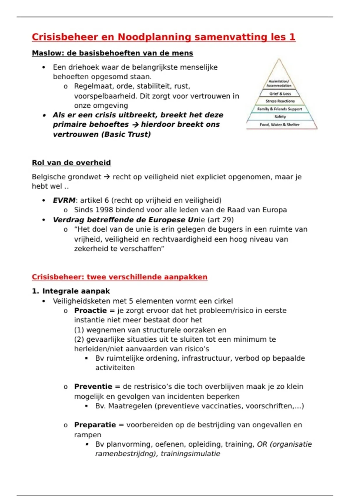 Crisisbeheer = het volledige veiligheidsketen van rampenbestrijding tot
