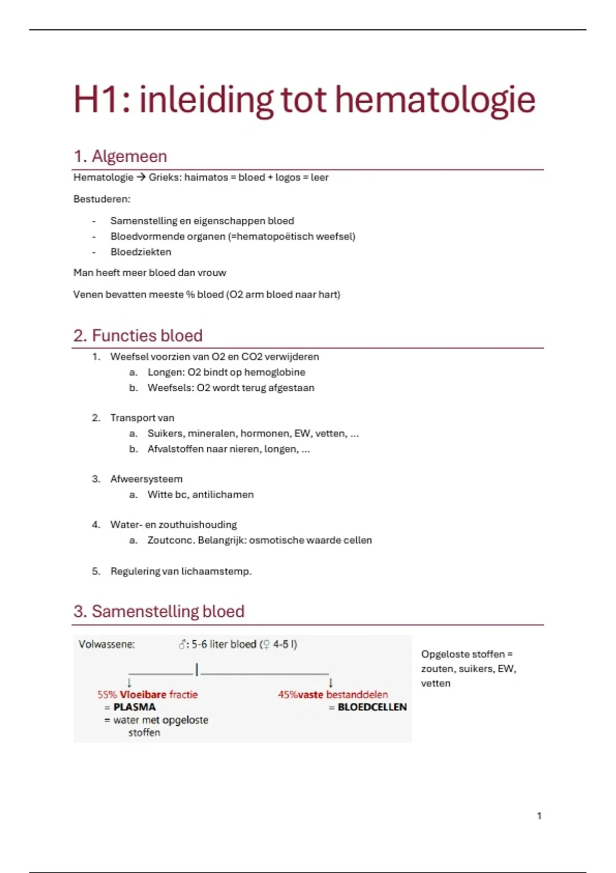 H1: inleiding tot hematologie