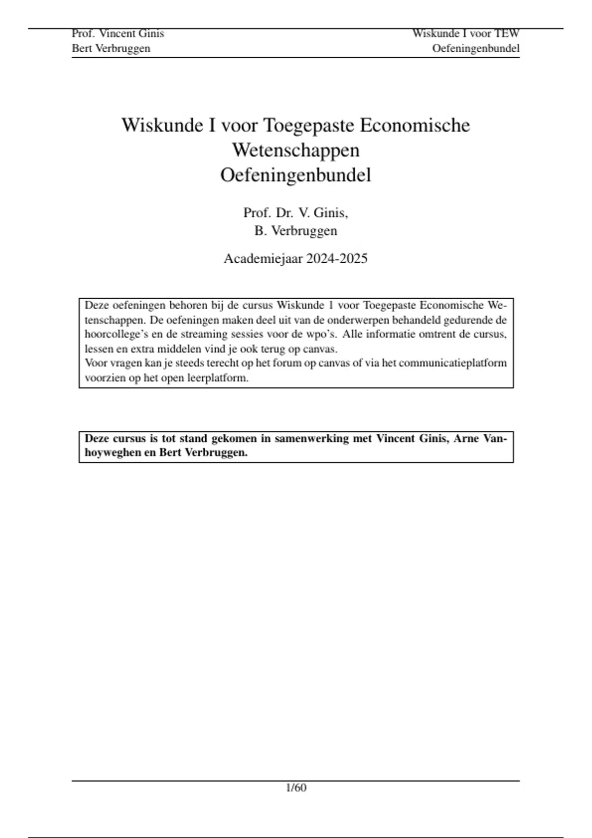 , Prof. Vincent Ginis Academiejaar WPO Wiskunde I TEW