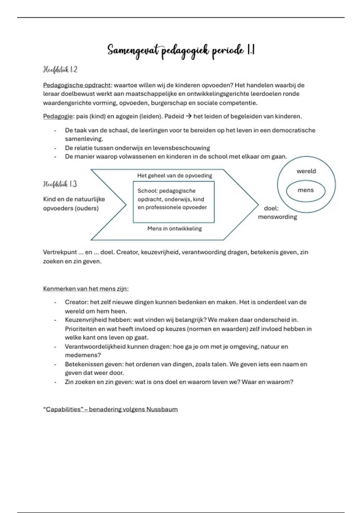 wereld → met anderen, de natuur en cultuur. De opvoeder leert het kind om te gaan met