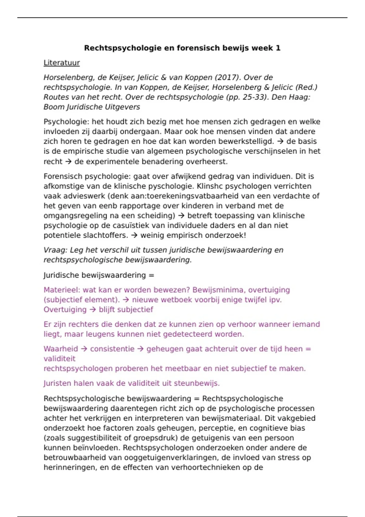 Rechtspsychologie en forensisch bewijs week 1