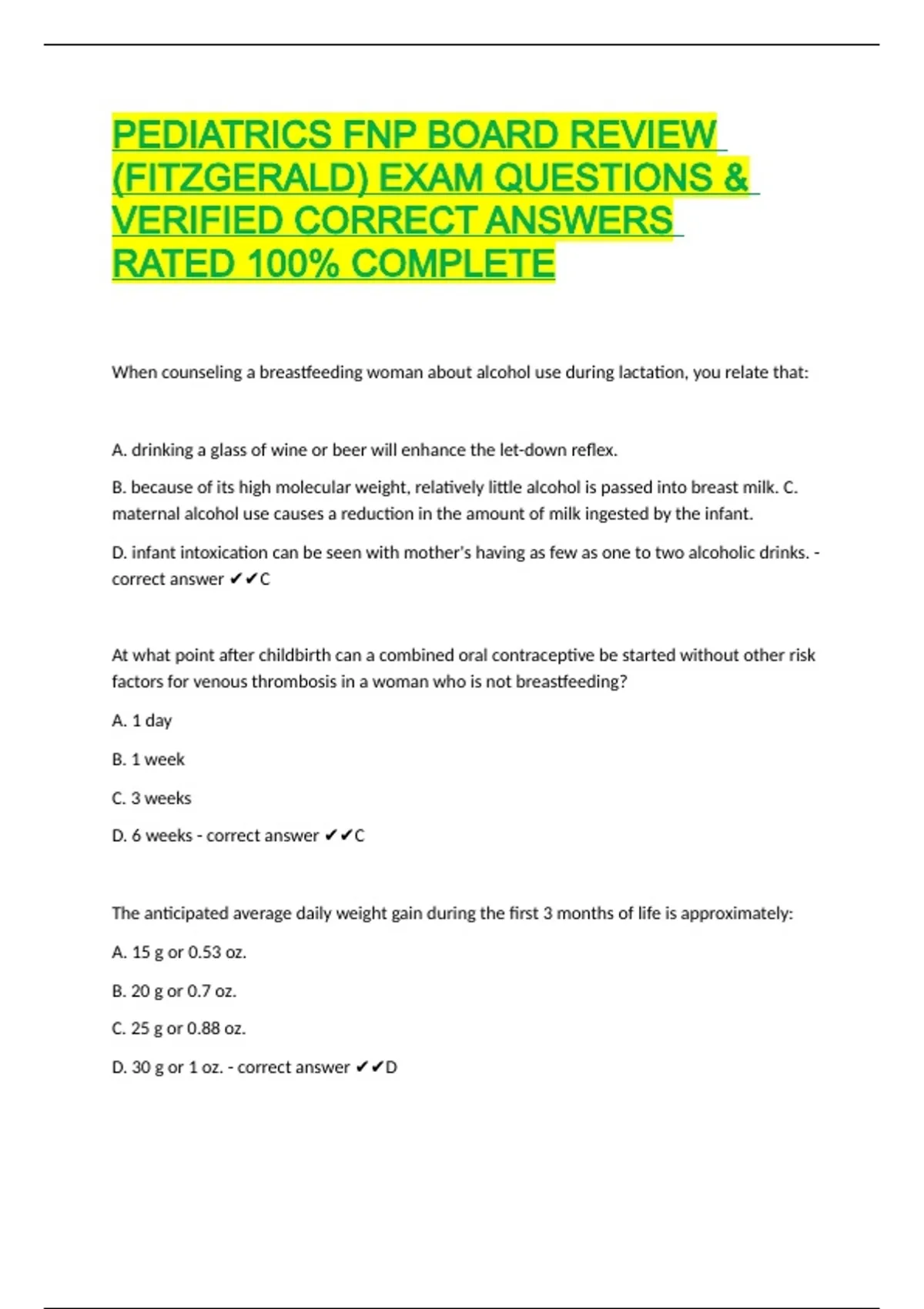 D. 6 weeks - correct answer ✔✔C