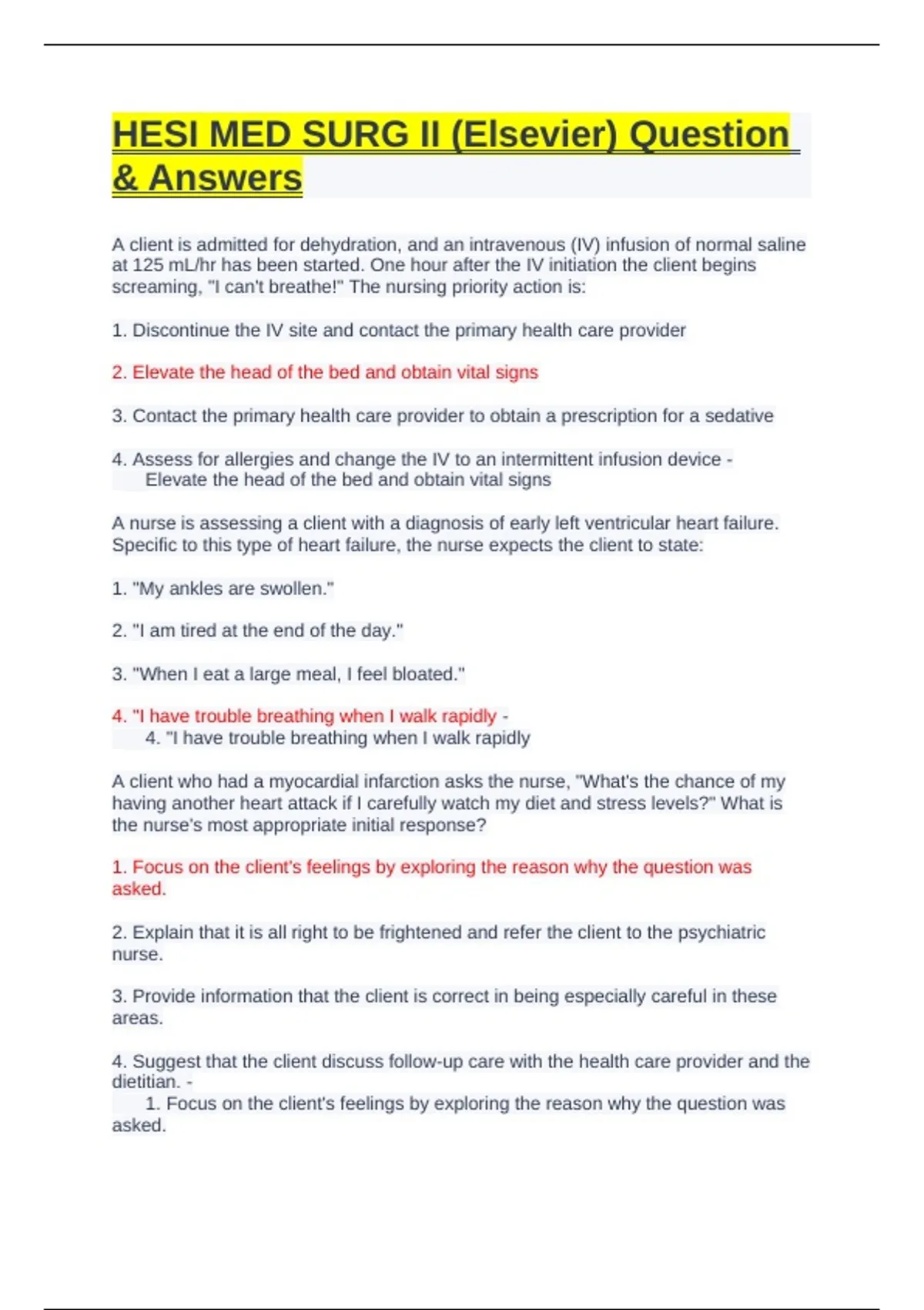 HESI MED SURG II (Elsevier) Question
