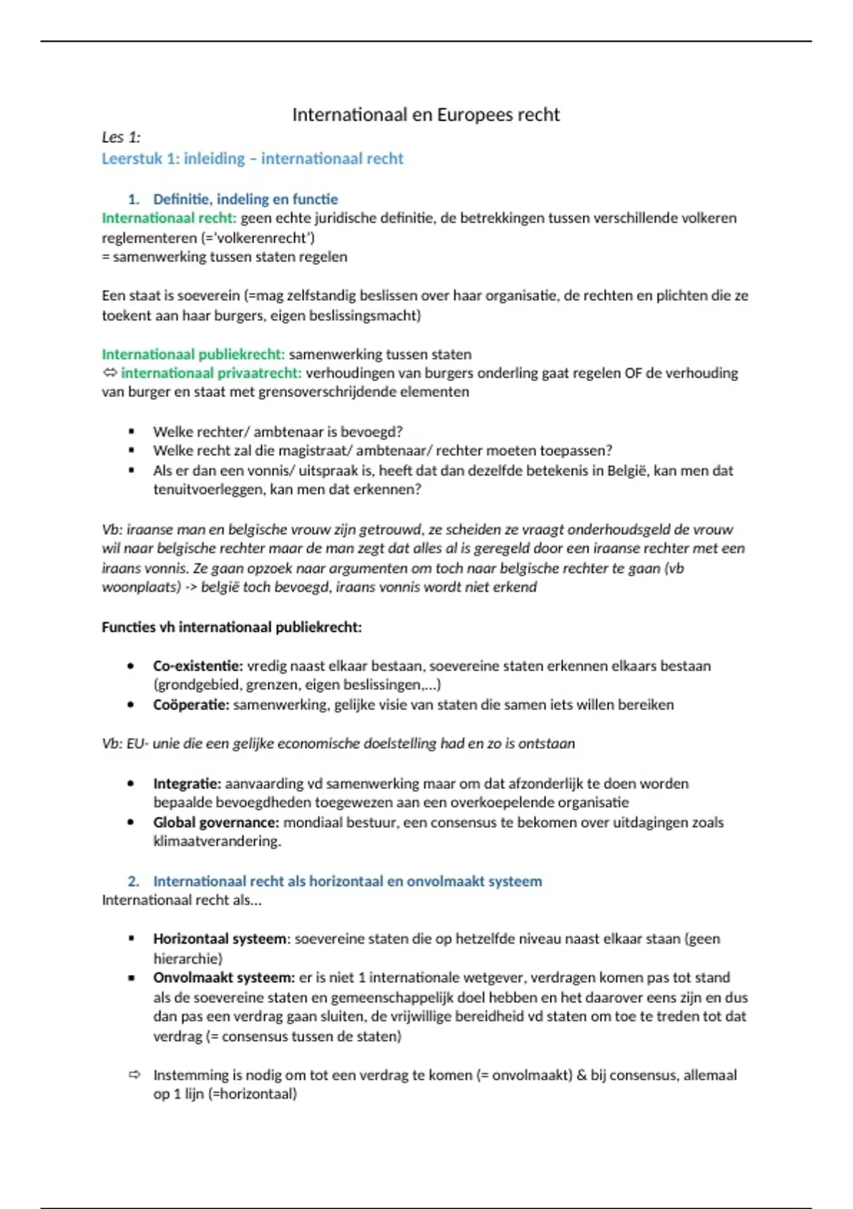 internationaal & europees recht: samenvatting + herhalingsoefeningen