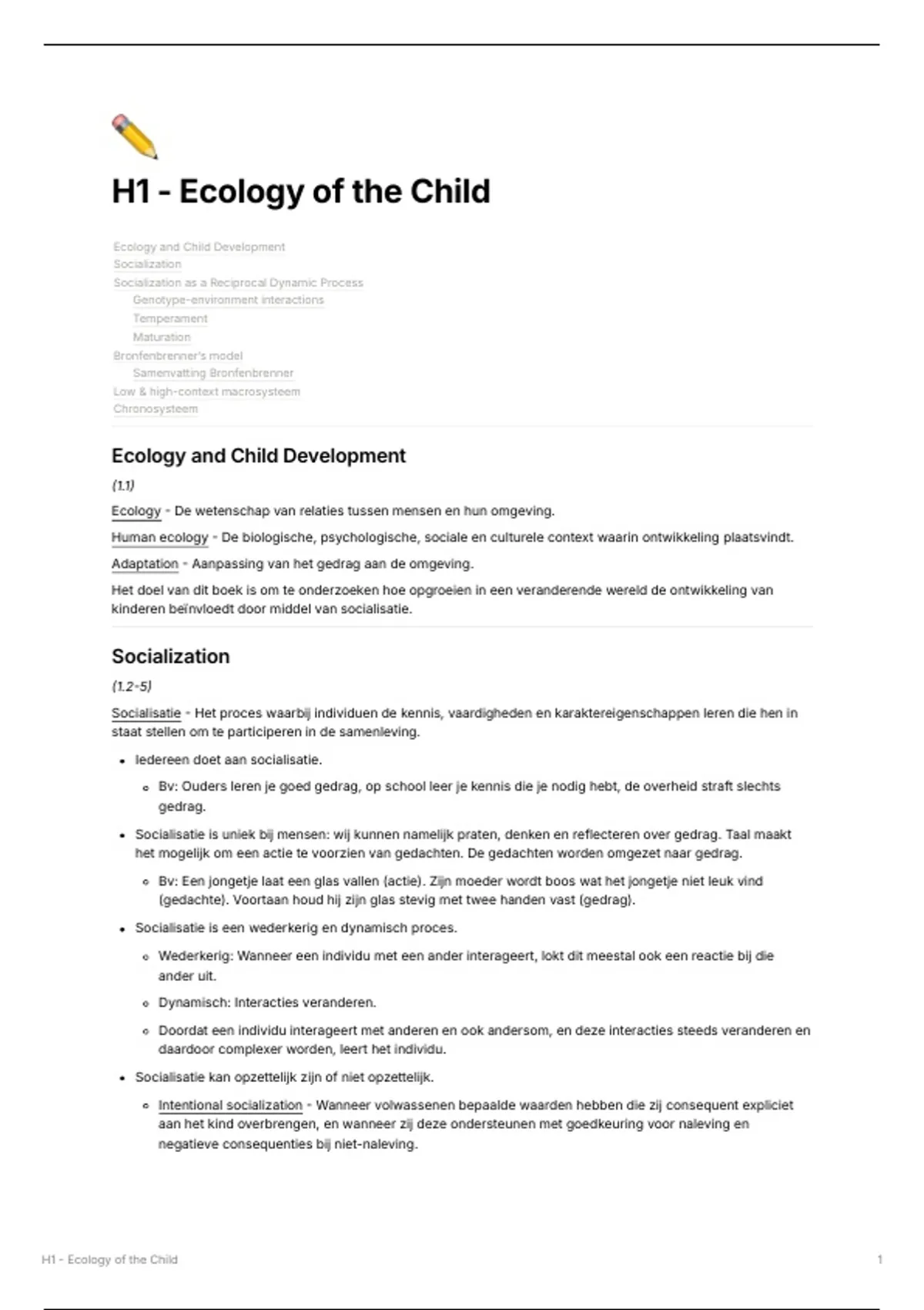 H1 - Ecology of the Child 1