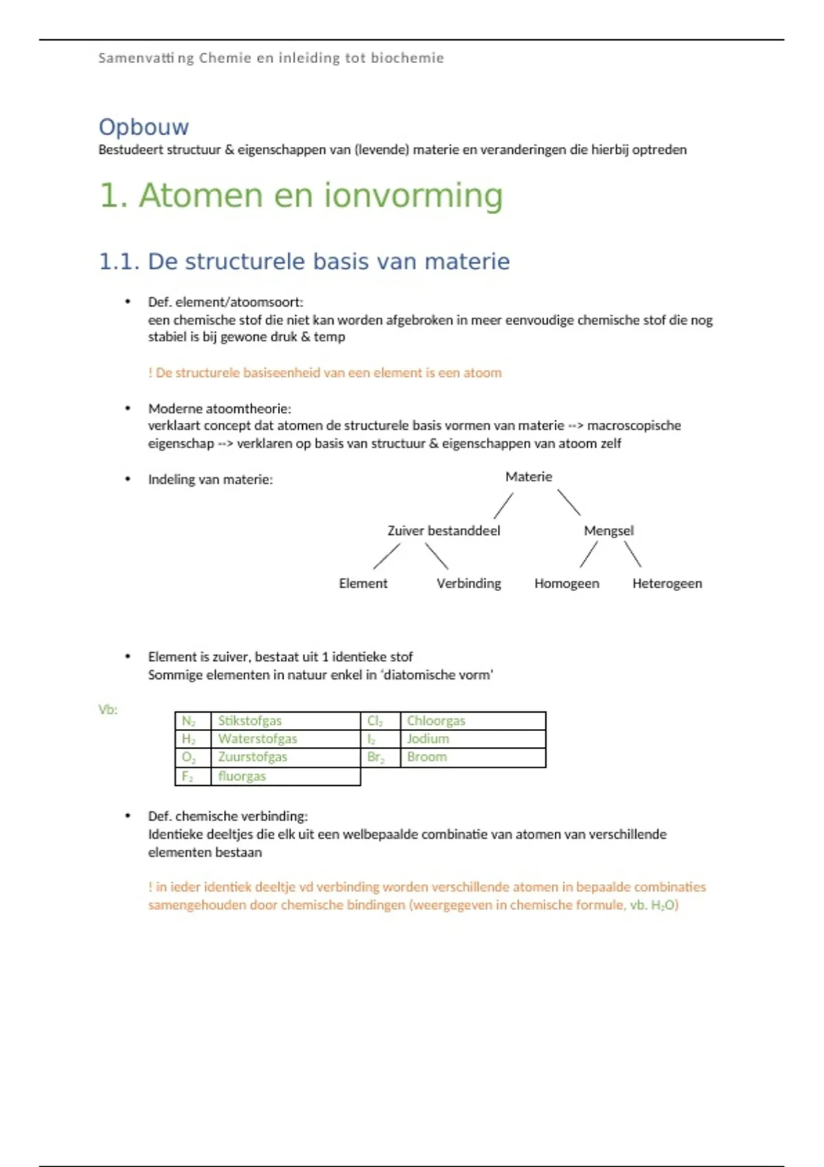 Samenvatti ng Chemie en inleiding tot biochemie
